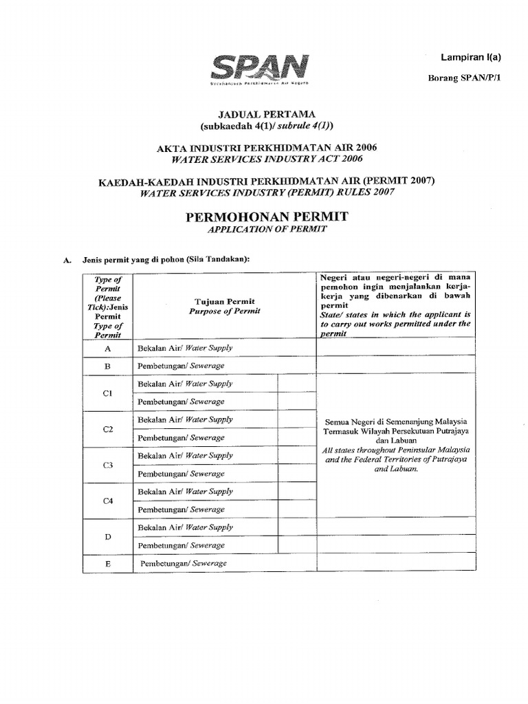 2031. Borang Lampiran Span 2 yang digunakan untuk maklumat peribadi pegawai sedang berkhidmat sahaja. 2 Borang Span P 1 Permohonan Baru Borang Span P 1 Permohonan Baru Prosidur Kerja Tukang Paip Pdf Borang Span P 1 Permohonan Baru Sewerage Maintenance License And Certification.